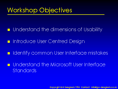 - Overview of all parts of the design process (first half day), then focus in on the stages the participants are involved in - more detail and practical skills - for rest of the 2 days.
