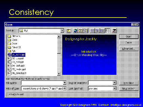 Standard file open layout, supplemented with preview and find