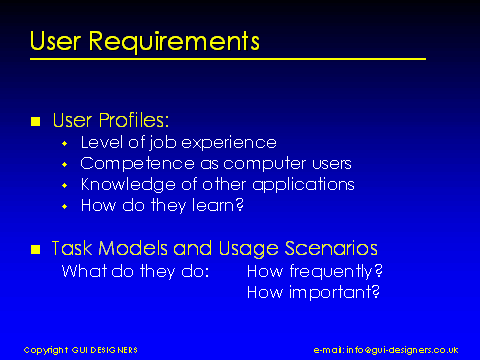 - in looking at who the customers are we consider categories of users, numbers in each category & the jobs they do