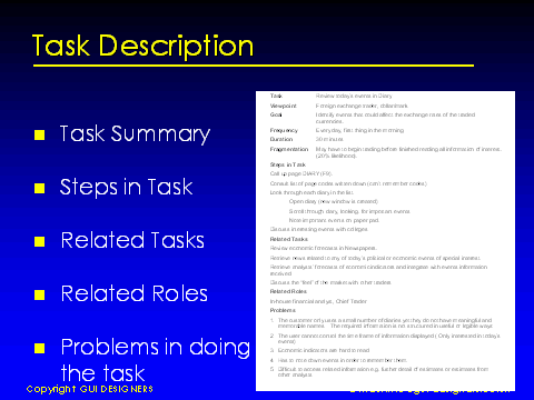 - Document existing task; identify inefficiencies when redesigning the task flow in the new system.